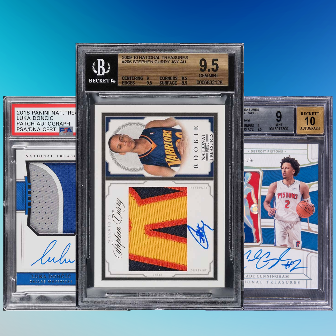 National Treasures (or NT) is one of, if not the premier brand of the Panini basketball era. Every National Treasures card has been numbered to 99 or fewer since its inaugural release under Panini in 2009. NT is most notorious for high-end rookie patch autographs with bright blue autographs and multi-colored patches.